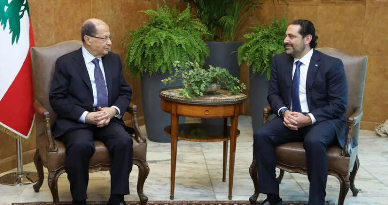 الحريري خلال لقائه عون في بعبدا أمس (أ.ف.ب)