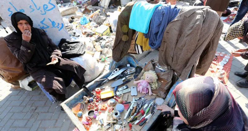 بائعتان في سوق الميدان وسط بغداد أمس (إ.ب.أ)