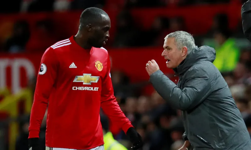 مورينيو مدرب مانشستر يونايتد يعطي تعليمات لمهاجم الفريق البلجيكي روميلو لوكاكو في مباراة سابقة (رويترز)