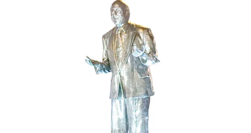 ويمثل النصب الفنان الراحل وهو يقف منتصبا فاتحا يديه، رمزا للعطاءات الفنية الكثيرة التي قدّمها طيلة مشواره الفني، فرفع اسم لبنان عاليا، وشكّل بصوته مدرسة فنية خاصة عرفت باسمه.