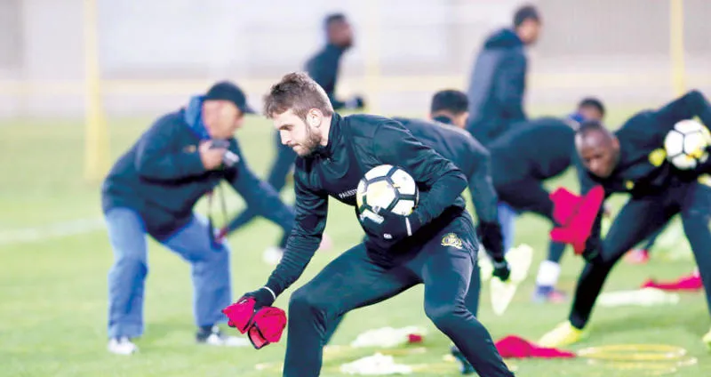 جانب من استعدادات فريق النصر أمس استعداداً لمواجهة القادسية (تصوير: عبد العزيز النومان)