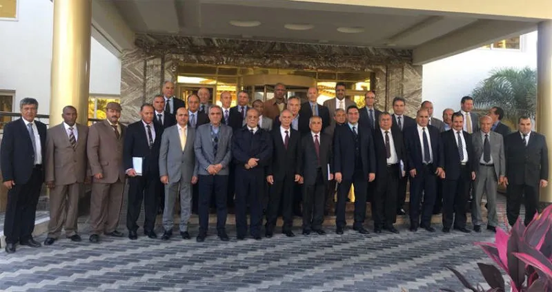 صورة وزعها العميد أحمد المسماري الناطق باسم الجيش الوطني الليبي لاجتماع الضباط الليبيين في القاهرة