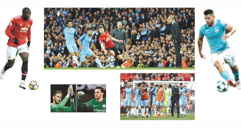أغويرو مهاجم سيتي (أ.ف.ب) - يعتمد كل من مورينيو وغوارديولا على تحكم لاعبيهما في المساحات على أرض الملعب ولكن بطريقتين مختلفتين - كانت آخر هزيمة ليونايتد على ملعبه على يد سيتي في سبتمبر العام الماضي («الشرق الأوسط») - مهمة صعبة لحارسي سيتي ويونايتد إيدرسون ودي خيا (أ.ف.ب) - لوكاكو مهاجم يونايتد (أ.ف.ب)