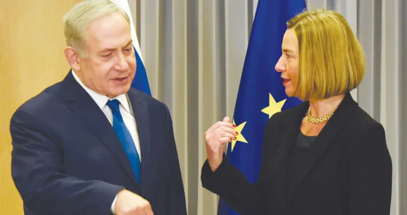 نتنياهو وموغيريني خلال اجتماعهما في بروكسل أمس (أ.ب)