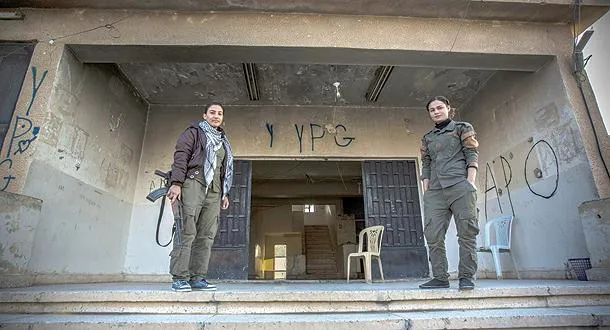 بينما كانت شمس الشتاء توشك على الأفول خلف الأفق البعيد، أشارت المقاتلة الكردية روساير إلى كتلة بعيدة من المباني التي خيم عليها الظلام.
