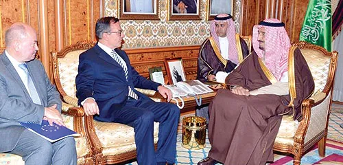 استقبل الأمير سلمان بن عبد العزيز ولي العهد نائب رئيس مجلس الوزراء وزير الدفاع السعودي في مكتبه بالمعذر، أمس، الممثل الخاص للاتحاد الأوروبي لعملية السلام في الشرق الأوسط الدكتور أندرياس رينيك والوفد المرافق له، وبحث اللقاء مستجدات الأحداث في منطقة الشرق الأوسط، واستعراض وجهات النظر في القضايا الراهنة.