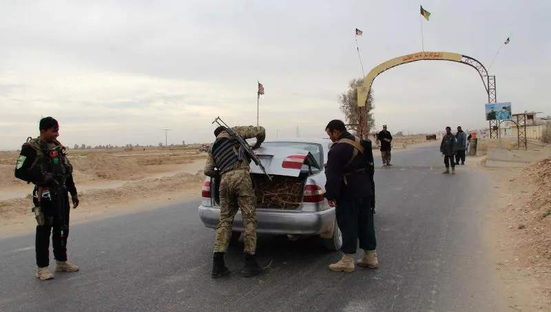 عناصر من الشرطة الأفغانية في نقطة تفتيش بولاية هلمند (أ.ف.ب)