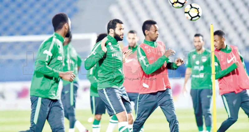 جانب من تحضيرات الأخضر السعودي أمس استعداداً للمباراة (تصوير: عبد العزيز النومان)