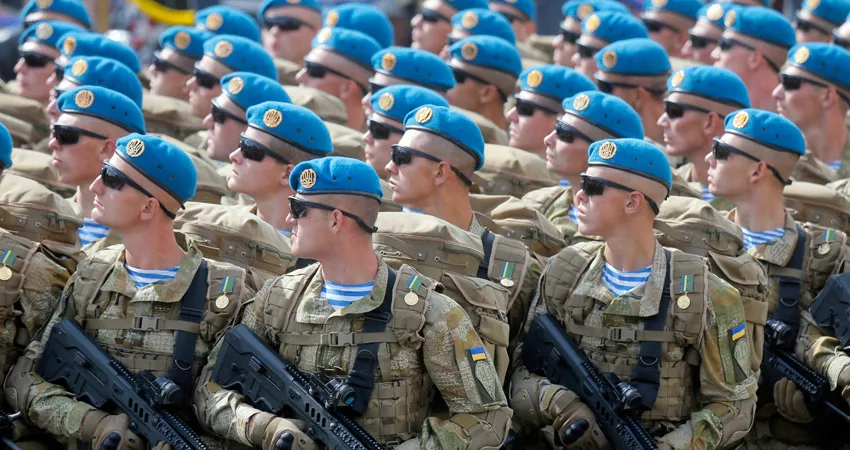 جنود أوكرانيون في عرض عسكري بمناسبة عيد الاستقلال في كييف أغسطس الماضي (أ.ب)