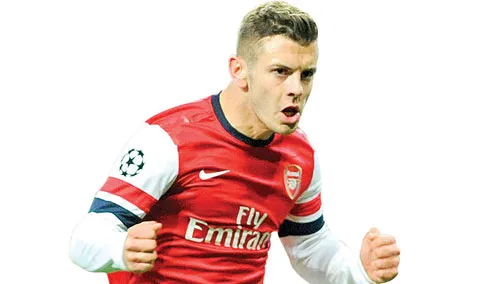 جاك ويلشير نجم آرسنال يحتفل بهدفيه في مرمى مرسيليا (إ.ب.أ)