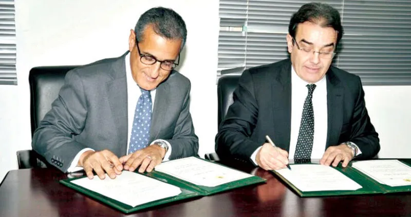 عبد الكريم بن عتيق الوزير المكلف المغاربة المقيمين بالخارج وشؤون الهجرة وكريم تجموعتي المدير العام للوكالة الوطنية للمحافظة العقارية خلال التوقيع على الشراكة («الشرق الأوسط»)