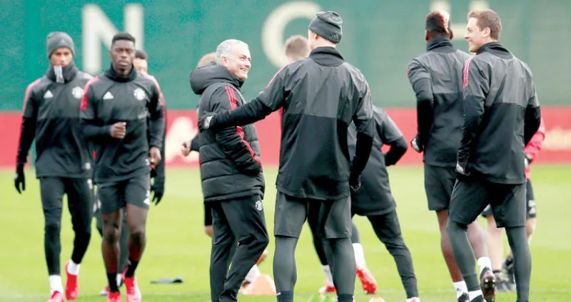 مورينيو في حديث مع إبراهيموفيتش خلال تدريب يونايتد (رويترز)