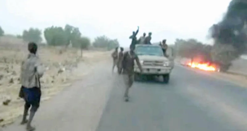 لقطة من شريط فيديو وزعته جماعة بوكو حرام لهجوم استهدف مركزاً أمنياً في ضواحي مايدوغوري (شمال شرقي نيجيريا) ليلة عيد الميلاد (أ.ف.ب)