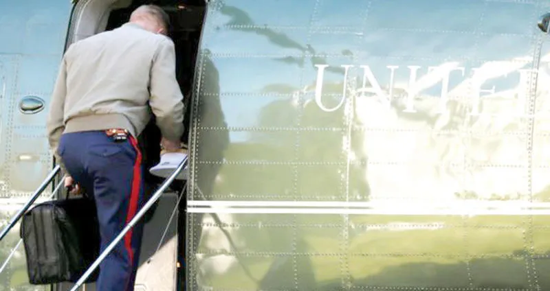 جندي بالبحرية الأميركية يحمل كرة القدم النووية إلى داخل مروحية (رويترز)