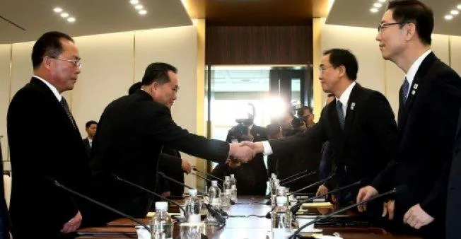 وتصافح وزير الوحدة الكوري الجنوبي شون ميونغ غيون الذي يترأس وفد بلاده، مع مسؤول وفد الشمال ري سون غوون قبل أن يدخلا المبنى، ثم من جديد عند طاولة المفاوضات.