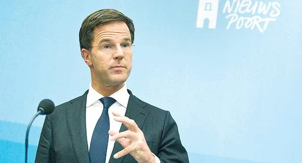 وزير المالية الهولندي مارك رات خلال مؤتمر صحافي بعد إعلان ستاندارد أند بورز خفض التصنيف الائتماني لبلاده (رويترز)