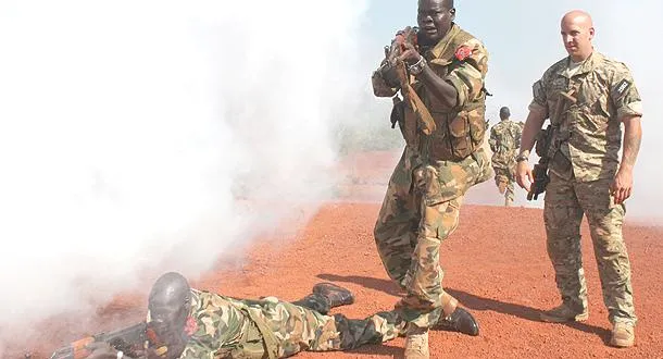 جانب من تدريبات عسكرية تشرف عليها قوات أميركية خاصة لجيش التحرير الشعبي في ضواحي يوامبيو في جنوب السودان (رويترز)