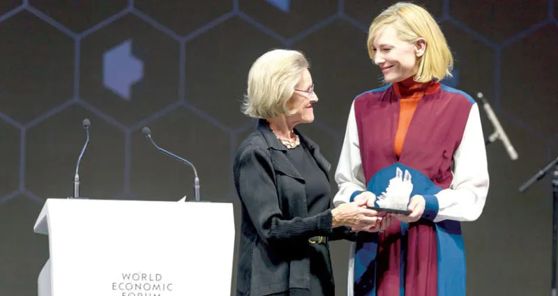 نجمة السينما كيت بلانشيت خلال تكريمها في دافوس (أ.ف.ب)