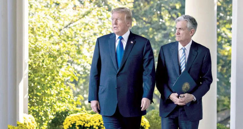 الرئيس الأميركي ترمب مع مرشحه المصرفي السابق جيروم باول رئيسا للاحتياطي الفيدرالي (بلومبيرغ)