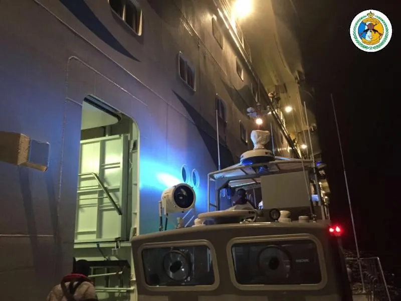 وأعلن المتحدث الرسمي لحرس الحدود، أنّه في إطار تنفيذ مهام السعودية بالاتفاقية الدولية للبحث والإنقاذ البحريين لعام 1979م، واستمرارًا للدور الإنساني الذي يقدمه رجال حرس الحدود في عمليات البحث والإنقاذ فقد تمكّنت الدوريات البحرية بقيادة حرس الحدود السعودي بمنطقة المدينة المنورة ، يوم (الثلاثاء) الماضي، من إخلاء أحد ركّاب سفينة إيطالية قادمة من كولومبيا،(سيدة ألمانية الجنسية )، في مياه البحر الأحمر المقابله لحدود مسؤوليات محافظة ينبع، تعاني من حالة نزيف داخلي وعدم القدرة على المشي وضيق في التنفس.