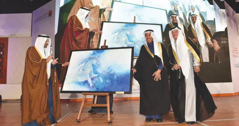 لوحة فنية مهداة للأمير سعود بن عبد الله بن ثنيان في حفل التكريم («الشرق الأوسط»)