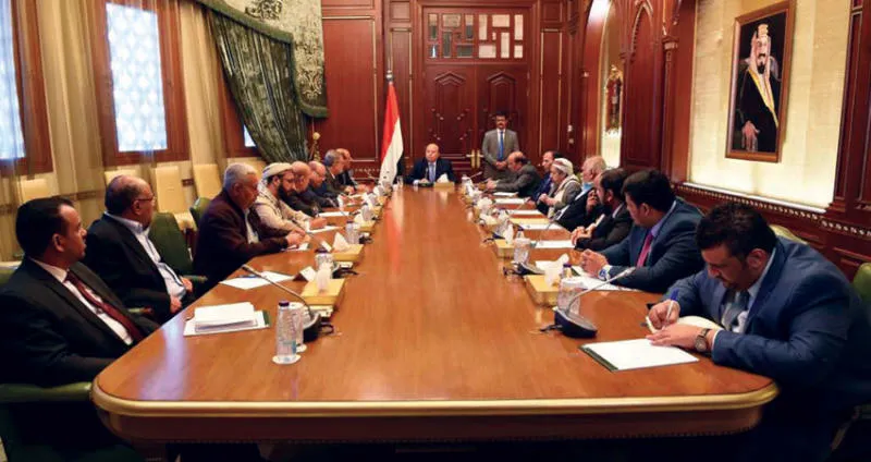 وطبقا لما نقلته الوكالة الحكومية (سبأ)، ألقى هادي كلمة في الاجتماع «جدد في مستهلها دعوته إلى الوقف الفوري لإطلاق النار» وأكد أنه «لا يمكن مطلقا للتمرد أو السلاح أن يحقق سلاما أو يبني دولة وأن المعركة الحقيقية والرئيسية هي مع الميليشيات الحوثية الإيرانية». وقال هادي الرئيس «لا يمكن القبول بأي احتكام للسلاح لتنفيذ مشاريع سياسية وأي تعد على الشرعية أو مؤسساتها هو انقلاب حقيقي سيقاومه شعبنا اليمني في كل مكان».