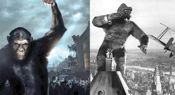 السينما والقردة تصاحبا منذ زمن بعيد. هناك تلك الأفلام القصيرة التي تظهر سعادين صغيرة، من تلك التي تحب الجلوس على كتف صاحبها ومضايقة الآخرين والتي جرى تصويرها، كأفلام تسجيلية كونها بلا دراما، في السنوات العشر الأولى من القرن العشرين. لكن الحضور الأكبر والأهم بالطبع انتظر لعام 1933 عندما قام المخرجان مريان س. كوبر وإرنست ب. شويدساك بتحقيق «كينغ كونغ»: ذلك الغوريلا الأطول من أشجار الغابة وأقوى من كل حيواناتها البدائية. سفينة تحمل مجموعة من السينمائيين ورجال مهنة الاستعراضات الفنية تحط على ساحل جزيرة لا وجود لها في أي خارطة. الفتاة الجميلة (فاي راي) تنطلق في الغاية غير مدركة أن ما عليها من وحوش وحيوانات ما زال يعيش عصر الديناصورات. وسريعا ما تجد نفسها في قبضة ذلك الغوريلا الوحش الذي يحملها بين أصابع يده. كان يستطيع أن يضغط عليها بأصبعه الصغير فتلفظ الروح، لكنه وجدها ولسبب في نفسه مثيرة تماما، والمفارقة مقصودة، كما وجدها النظّارة آنذاك وهم يتابعون فيلما لم يشبه أي فيلم آخر قبله.
