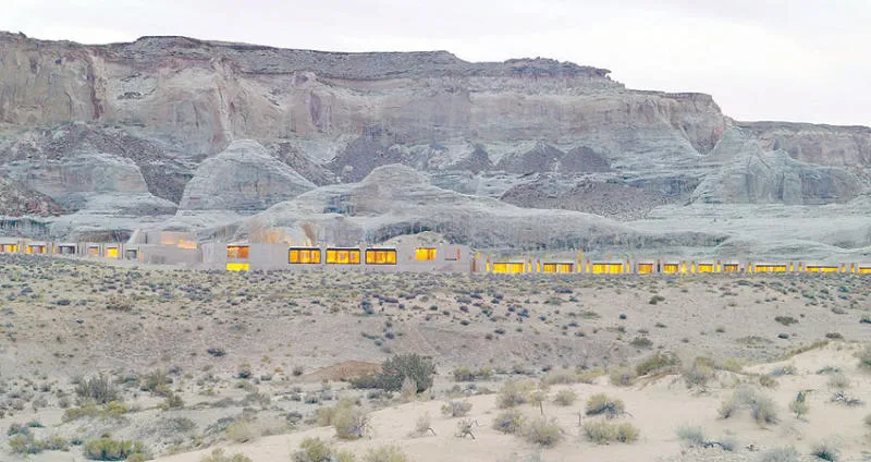 في قلب صحراء يوتا الأميركية، وعلى بعد 20 دقيقة بالسيارة عن أقرب مدينة ونحو خمس ساعات بالسيارة من لاس فيغاس، يقع فندق «أمانجيري». إنه ليس منتجعا أو فندقا عاديا. هو أقرب إلى قلعة نائية لا يعرف عنها إلا العارفون ولا يزورها سوى الراغبين في شحذ طاقتهم بعيدا عن العيون وعن أي شيء يمكن أن يشدهم للعالم الخارجي. فهو يستكين بين أحضان بانوراما صحراوية وعرة تجعل المقيم فيه يشعر كما لو أنه مقطوع فعليا عن العالم. المنتجع جزء من سلسلة منتجعات «أمان ريزورت» التي يوجد مقرها بسنغافورة وتتخصص في تشييد وتصميم فنادق في أماكن بعيدة وغريبة تتماهى مع الطبيعة المحيطة بها. في حالة منتجع أمانجيري فإنه يبدو من بعيد وكأنه جزء من الجبال الصخرية المحيطة به. كلما اقتربت توضحت معالمه الهندسية المصنوعة من الإسمنت المصبوغ بمزيج من الوردي وأوكسيد الرصاص والأصفر الهادئ. منظره الخارجي، الذي يبدو وكأنه كتلة من الصخور الناتجة عن عوامل التعرية، لا يشي بما بداخله من ترف تتجسد في غرف وأجنحة شاسعة تتمتع بتسهيلات عصرية شتى، من استوديو يوغا إلى منتجع صحي وحمامات سباحات واسعة. وهو يحتل مساحة 600 فدان. ونظرا لسعره العالي، فإنه لا يزال لحد الآن يخاطب النخبة من الأثرياء ورجال الأعمال والنجوم الذين يريدون الحفاظ على خصوصيتهم.