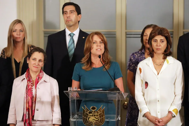 وزيرة خارجية البيرو كايتانا ألخوفين تتحدث لـ«مجموعة ليما» (رويترز)