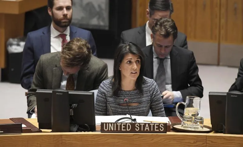 السفيرة الأميركية لدى الأمم المتحدة نيكي هايلي (أ.ف.ب)