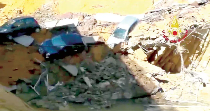 انهيار أرضي يبتلع 6 سيارات في روما