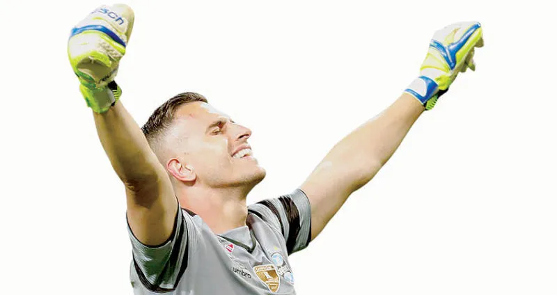 غروهي حارس غريميو يحتفل بتصديه لركلة الترجيح الحاسمة (أ.ب)