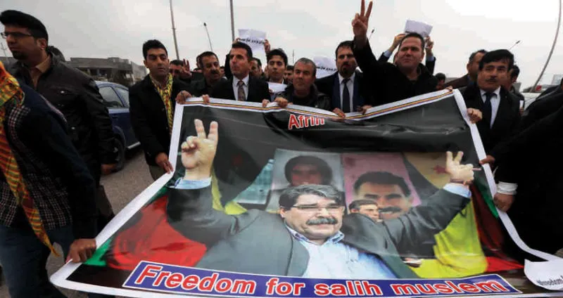 أكراد يتظاهرون في أربيل تضامناً مع صالح مسلم أمس (أ.ف.ب)