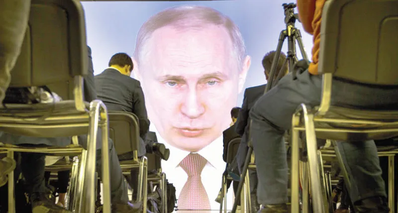 الرئيس الروسي فلاديمير بوتين تحدث في خطاب أمس عن انجازات عسكرية قال إنها شكلت نقلة نوعية في قدرات بلاده (أ.ب)