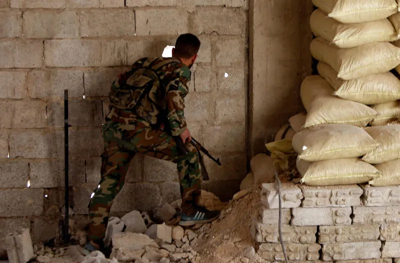 مقاتل موالٍ للنظام السوري بالغوطة (رويترز)