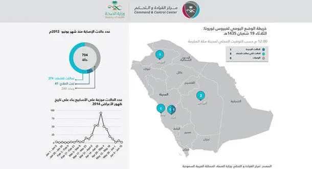 مؤشر حالات مركز القيادة والتحكم التابع لوزارة الصحة (الشرق الأوسط)