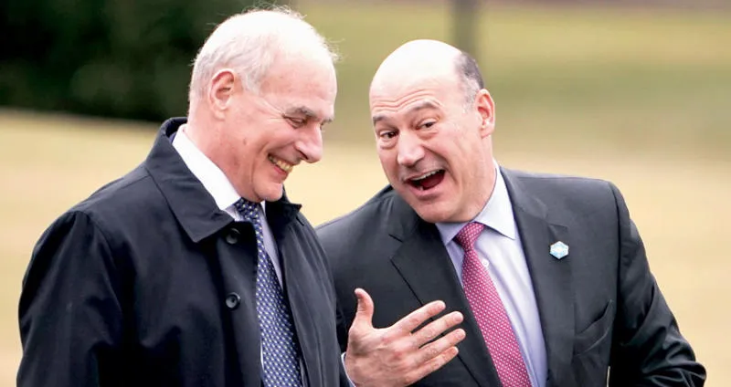 جون كيلي كبير موظفي البيت الأبيض (يسار) مع غاري كوهن (أ.ف.ب)