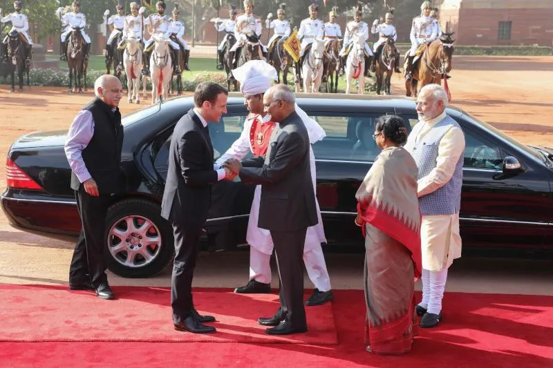 الزيارة الرسمية الأولى للرئيس الفرنسي إيمانويل ماكرون إلى الهند (أ.ف.ب)