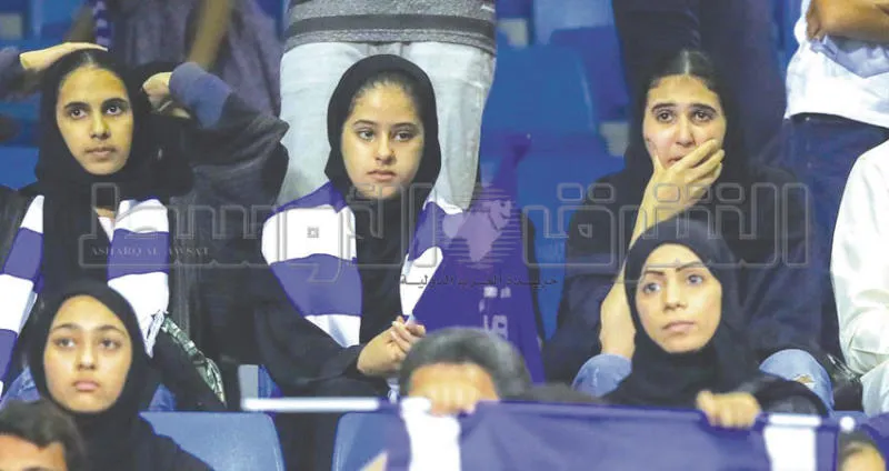 مشجعات هلاليات ويبدو التأثر واضحاً عليهن بعد الخسارة من الاتفاق (تصوير: عيسى الدبيسي)