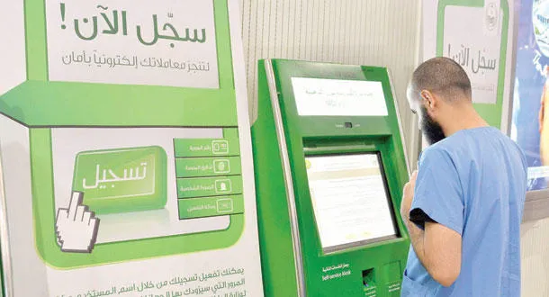 مواطن ينجز خدمات تقدمها «الجوازات» عبر أجهزتها الإلكترونية المتوزعة في مختلف المناطق («الشرق الأوسط»)