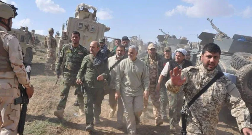 الجنرال الإيراني قاسم سليماني وسط قوات عراقية في تكريت. (أرشيفية)