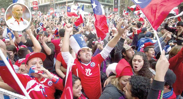 جماهير تشيلي خرجوا للاحتفال بانتصار منتخبهم على الإسبان (أ.ف.ب) وفي الاطار سامباولي مدرب منتخب تشيلي