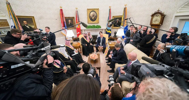 الرئيس الأميركي دونالد ترمب يستقبل ولي العهد السعودي الأمير محمد بن سلمان في البيت الأبيض (إ.ب.أ)