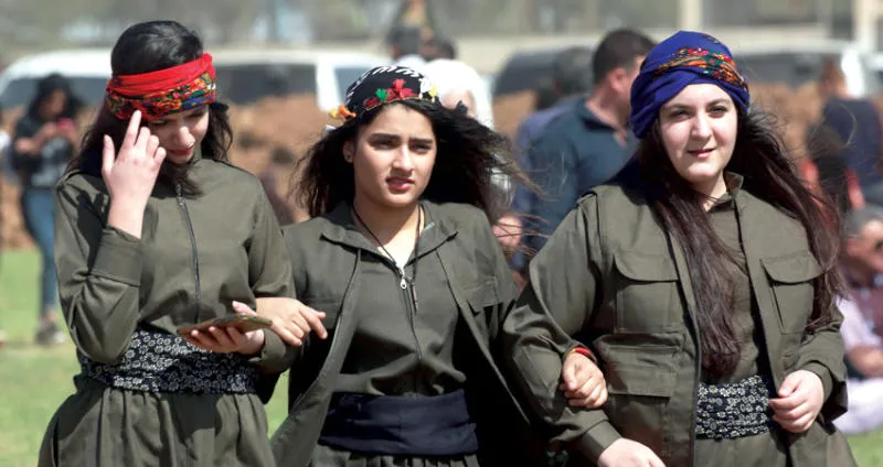 كرديات في القامشلي شمال شرقي سوريا أمس (أ.ف.ب)