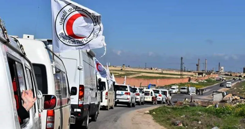سيارات تابعة لمنظمة الهلال الأحمر السوري في طريقها إلى درعا («الشرق الأوسط»)