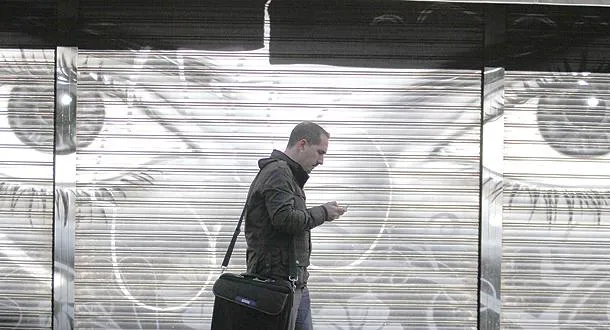 رجل ينظر إلى هاتف أثناء سيره في شارع بمدريد. وأفادت وثائق بأن الاستخبارات الأميركية تتعقب مواقع نحو خمسة مليارات هاتف جوال حول العالم يومياً (ا.ب)