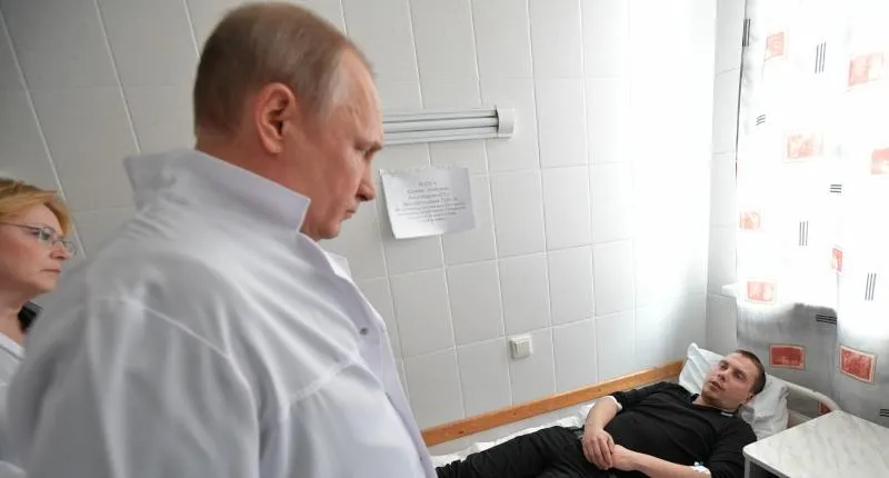 الرئيس الروسي يزور أحد المصابين في الحادث (أ.ف.ب)