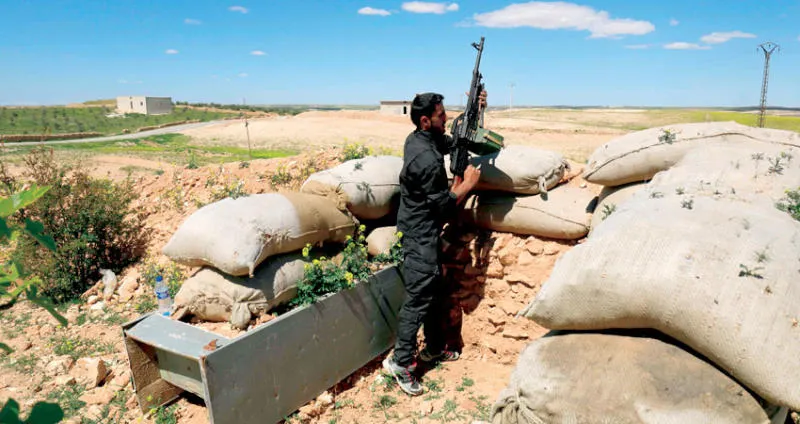 مقاتل معارض في منبج شمال سوريا أمس (أ.ف.ب)