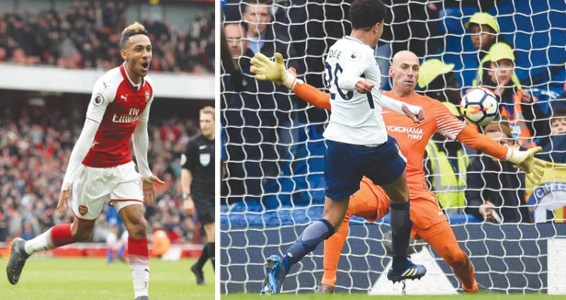 ديلي آلي نجم توتنهام يسجل في مرمى تشيلسي (إ.ب.أ) - أوباميانغ نجم آرسنال يحتفل بهدفيه (إ.ب.أ)