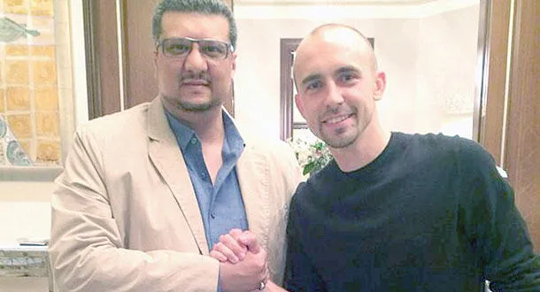 رئيس النصر وإلى جانبه البولندي أدريان بعد توقيع العقد